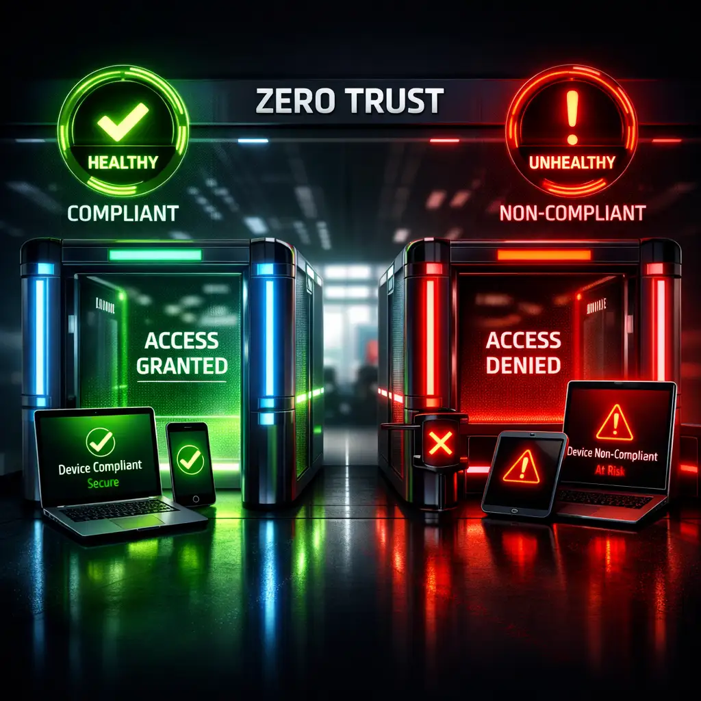 Access is granted based on verified device identity, security posture, and contextual trust evaluation.