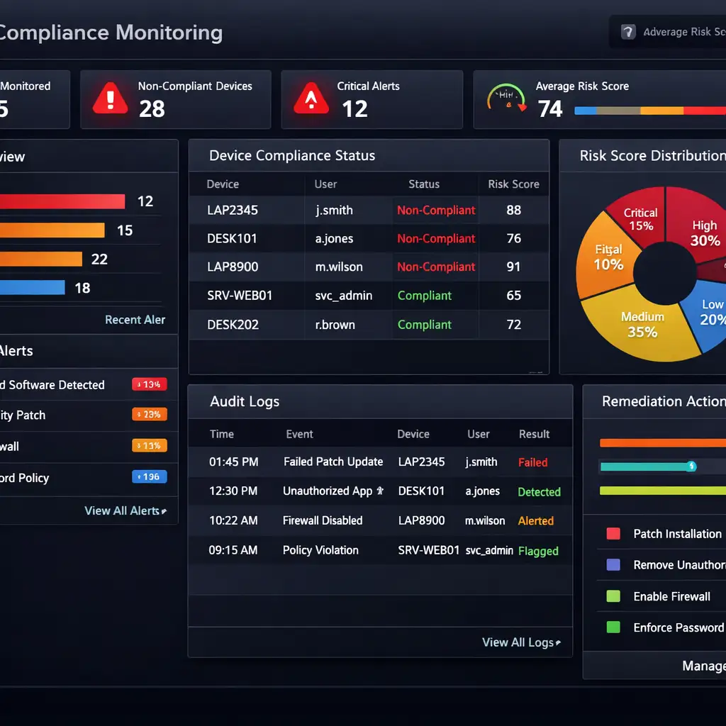 Endpoint compliance is monitored continuously to detect and address issues early.