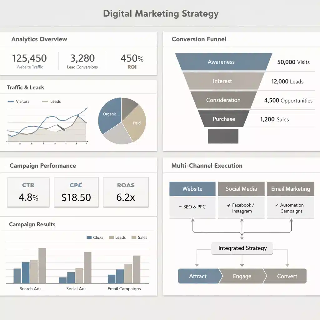 Effective marketing is driven by strategy, data, and consistent execution. Our Marketing services help businesses build strong brand presence, generate qualified leads, and measure real return on investment, not just visibility. We combine digital strategy, creative execution, and performance analytics to deliver marketing initiatives that support business growth and customer engagement across multiple channels.